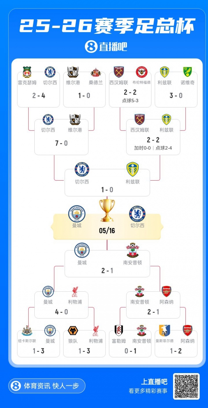 双蓝会!足总杯决赛对阵:曼城vs切尔西,5月16日22点决战温布利